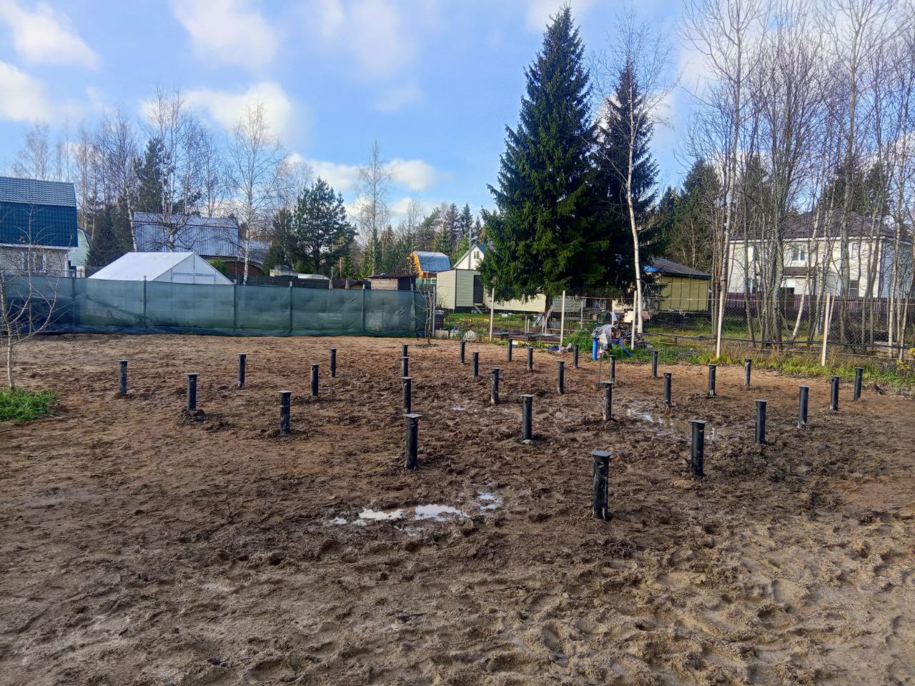 Работа по монтажу свайно-винтового фундамента была выполнена нашей бригадой в полном объеме всего за один рабочий день. Каждый этап был проведен с высочайшей точностью и контролем качества: